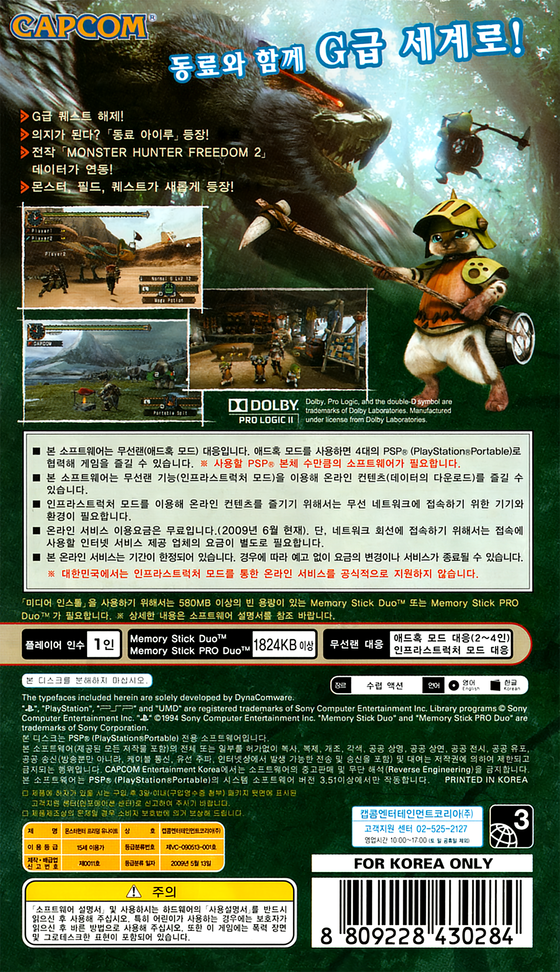 ※ 표지에도 적혀있지만 Monster Hunter Portable 2nd G랑 같은 게임인데 지원 언어만 다른 버전...